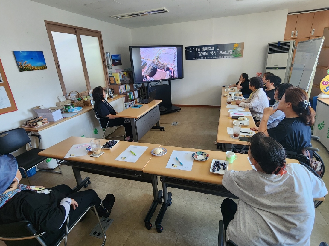 회원님들 덕분에 잘 마쳤습니다. 문학작품을 감상하고 나서 공감과 사색을 나눌 수 있어서 행복했습니다. 함께 보고, 느끼고, 생각하는 새로운 프로그램의 시도라는 점에서도 긍정적인 의견이 모아졌습니다. 맛있는 다과를 후원해 주신 양을순 총무님과 안순선 회원님께 감사의 마음을 전해드립니다 아침, 저녁으로 선선한 바람이 불어오는 9월, 회원님들 모두 건강하게 보내시고요. 10월의 지역문화탐방 프로그램때 뵙도록 할께요. |
